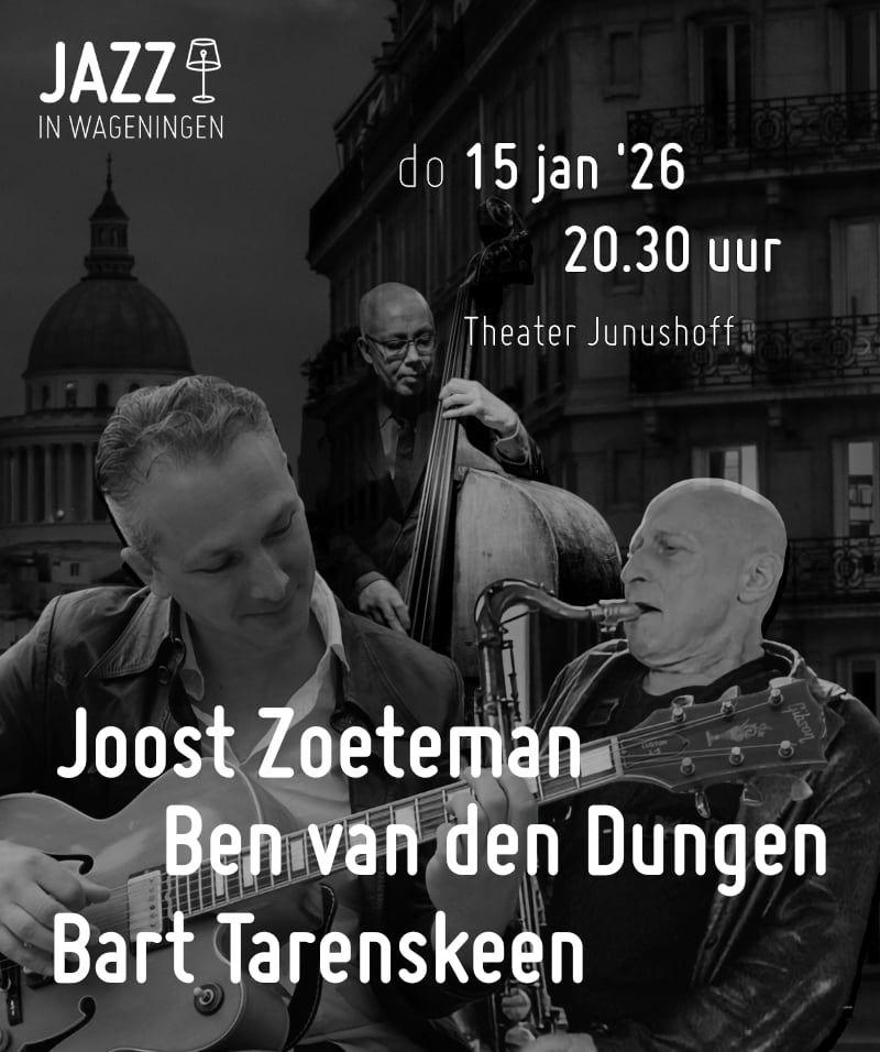Jazz in Wageningen trapt het jaar af met een bijzonder concert. Het Joost Zoeteman Trio staat op het podium met het programma Nocturne Parisienne, een muzikale reis door de rijke jazztraditie van Parijs. In dit programma combineren drie topmusici hun talent en passie voor klank en improvisatie. De bezetting bestaat uit Joost Zoeteman op gitaar, Ben van den Dungen op saxofoon en Bart Tarenskeen op contrabas.