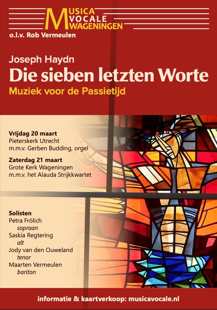Het Wageningse kamerkoor Musica Vocale geeft een uniek concert met Haydns Sieben letzten Worte. Het koor onder leiding van dirigent Rob Vermeulen geeft regelmatig uitdagende concerten, meestal a-capella, en soms ook met instrumentale begeleiding.