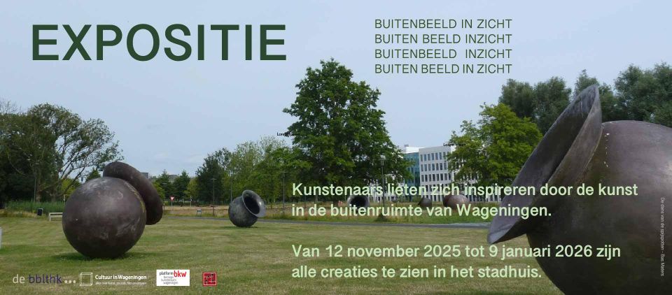 Tientallen kunstenaars hebben zich de afgelopen maanden laten inspireren door de vele kunst in de openbare ruimte die Wageningen rijk is. Een verrassende hoeveelheid schilderijen, beelden en gedichten is het resultaat. De tentoonstelling is tijdens de openingsuren van het stadhuis te zien van 12 november tot en met 9 januari. De toegang is uiteraard gratis.