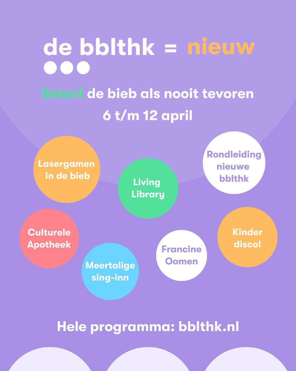 Na maanden verbouwen is het zover: de vernieuwde bblthk opent haar deuren. Van 6 t/m 11 april vieren ze dat met een week vol verhalen, workshops, muziek, onderzoek en plezier.