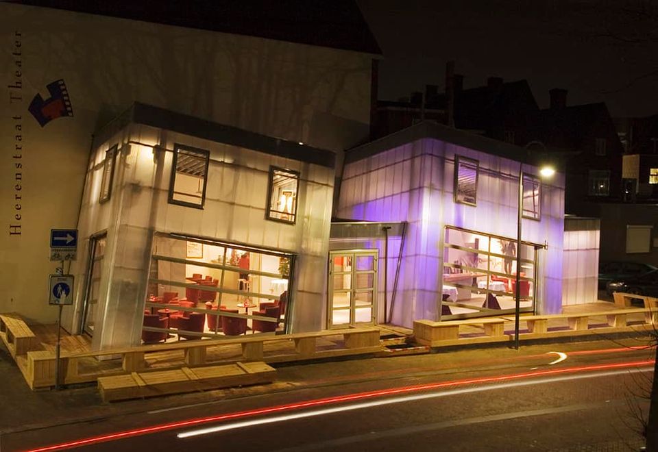 De eyecatcher van de hoek Molenstraat-Heerenstraat is ons opvallend vormgegeven Theatercafé van het Heerenstraat Theater.